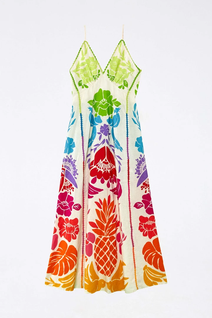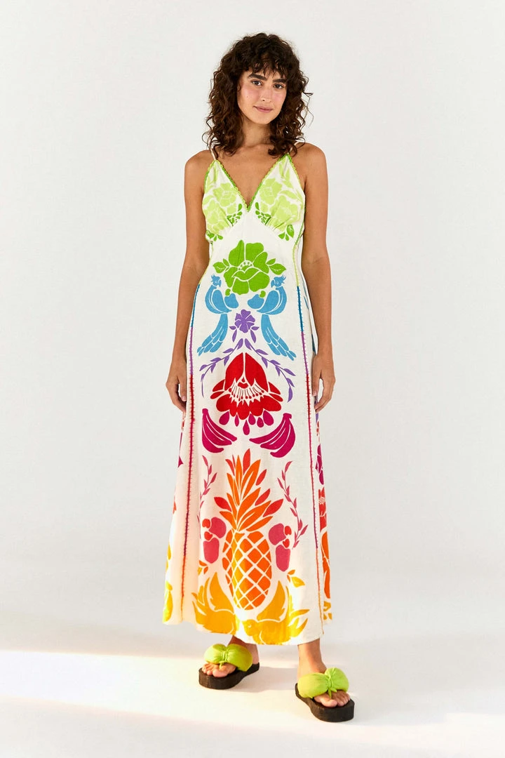 Your new fancy-yet-cool way to dress in happiness! The Tropical Graphic Maxi Dress has every single detail to walk you through any sunny season. It features a flowy fit to follow your bold moves, cute crochet detailing, a standout plunging neckline, and a tropical print to spread joy around the city. Bring cool shoes and accessories to complete this joyful combo <3