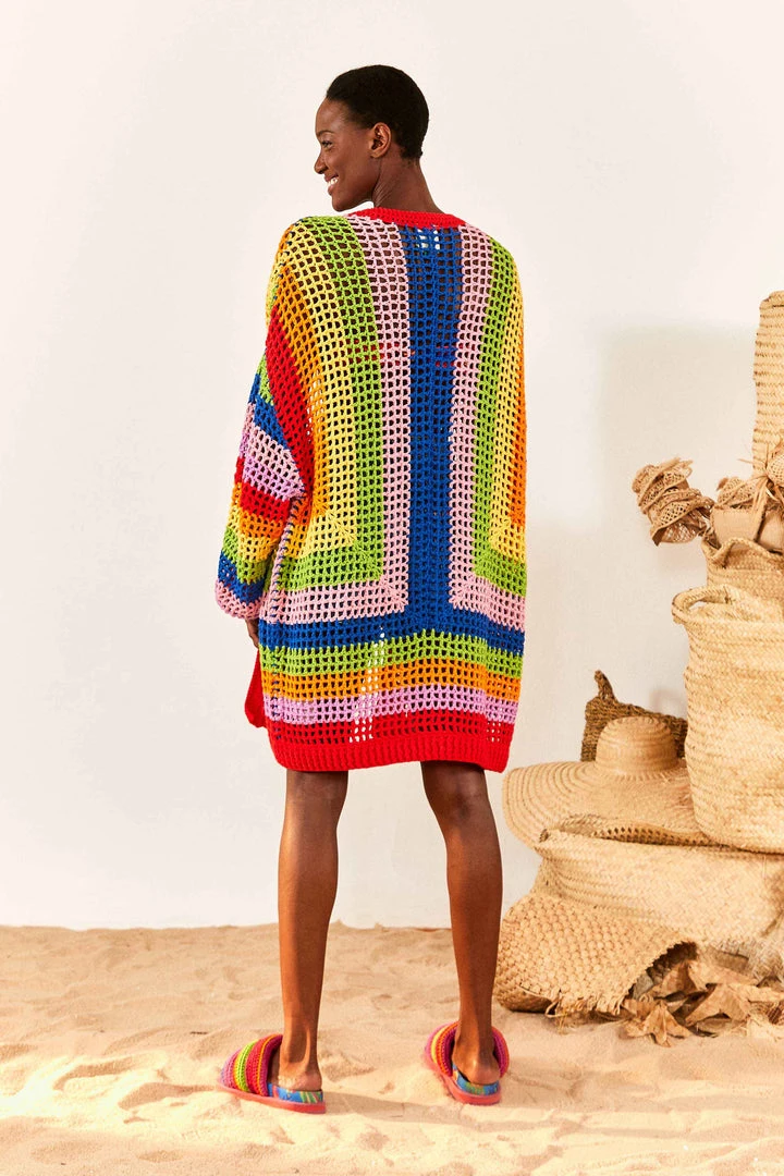 You just found the Summer fave to leave people speechless everywhere! The Multicolor Crochet Cardigan brings our artisanal vibe in all the colors you love to spread joy. Do you know who would also love to join this colorful combo? All your cool tops & bottoms (printed or not, you name it!). Invite also your bold FARM Rio Shoes and go have fun, baby <3