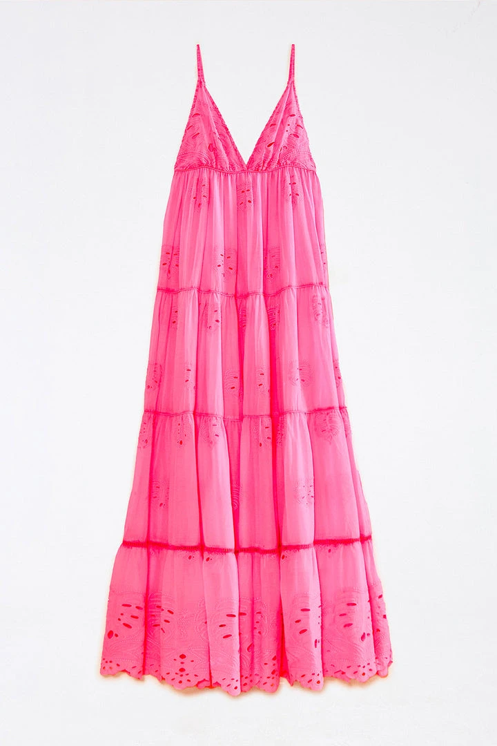 That’s the new definition of a solid traffic-stopping fave to call your own! The Neon Pink Maxi Dress is a fresh way to enjoy sunny days because of its cozy fit with lace detailing that goes with your Summer flow. Invite colorful FARM Rio Shoes to spread joy with you and your fave dress wherever you’re going to follow the sun 🙂
