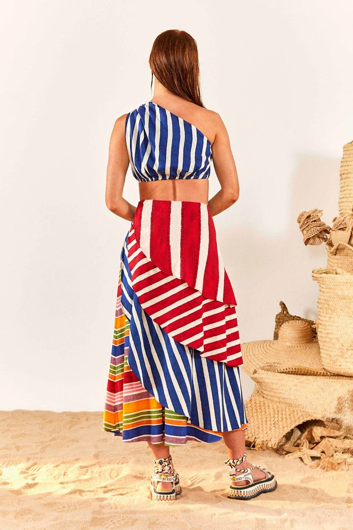 What a fun way to dress in happiness this season! The Amazing Stripes Frill Midi Skirt features the coziest silhouette you can find with a mix of colorful stripes. Bring the Blue Stripes Twisted Top and your bold FARM Rio sandals on to complete your WOW look <3