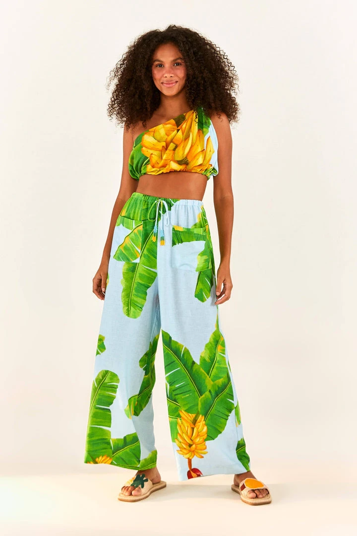 Ready to taste this delicious tropical fave? The Blue Fresh Bananas One Shoulder Knot Top brings one of our must-have prints full of flavor! It features a cozy fit with a knot detailing to drop some jaws around you. We think the Blue Fresh Bananas Pants are the cutest match for your new top, and you can also invite fresh FARM Rio sandals and mules to complete your solar look <3