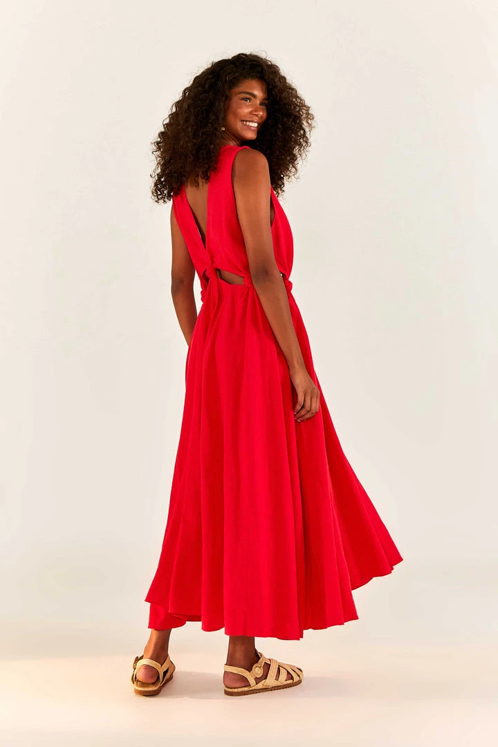 A solid statement of what making a bold impression means to you. The Red Cut-Out Midi Dress is here in the most fancy-yet-cool silhouette you can find out there! It also features a plunging neckline and cut-out detailing to level up whatever sunny plans you have in mind. This red dress matches your fresh FARM Rio Shoes from slides to mules (and everything in between!).