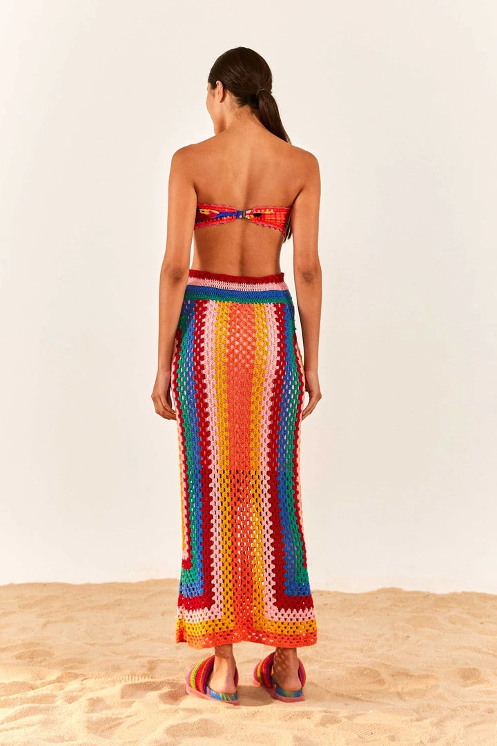 Your new fancy-yet-cool way to dress in happiness! The Striped Scarf Crochet Midi Skirt will walk you through any sunny season with its slim fit and the crochet style you love. Invite your colorful tops and cool FARM Rio Shoes to join your awe-inspiring combo <3