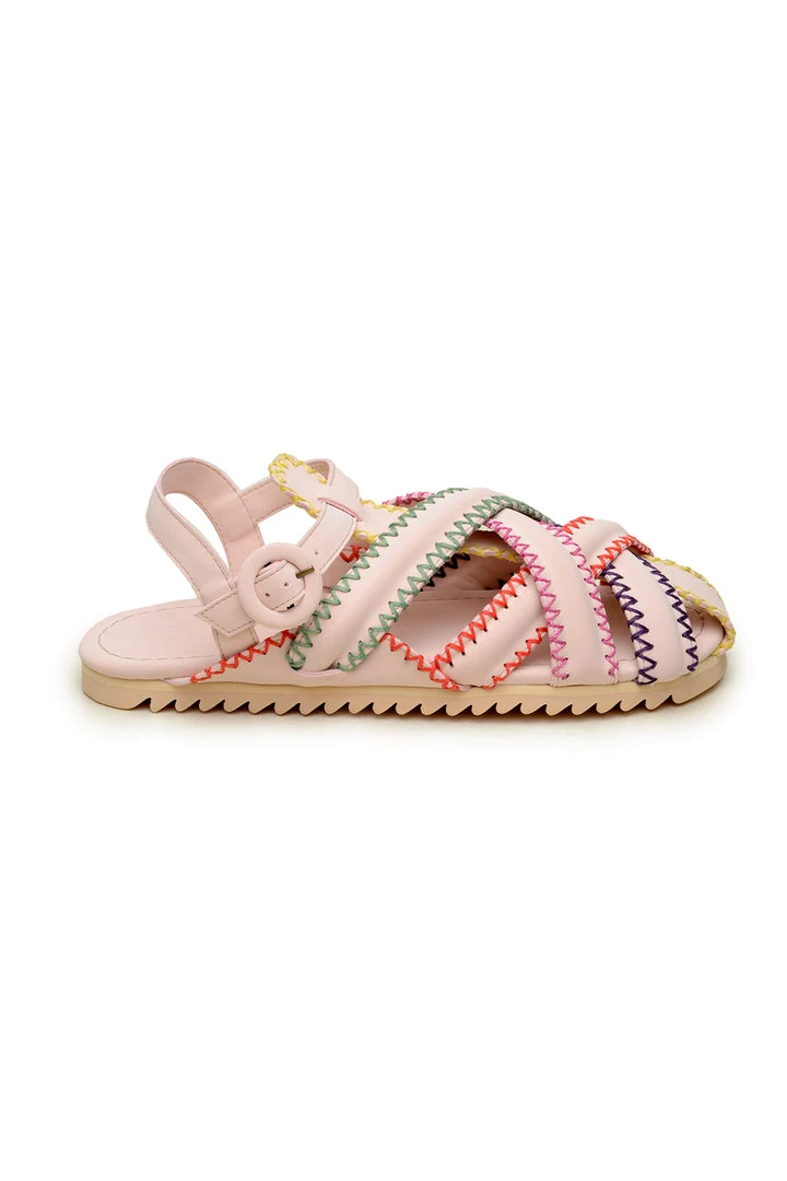 Walk in Happiness! The Nude Zigzag Sandal features vegan leather straps with seam detailing and a rubber sole with vegan leather. Your FARM Rio Shoes match pretty much everything you have in your timeless wardrobe, from dresses to jumpsuits to pants (and all in between!).
