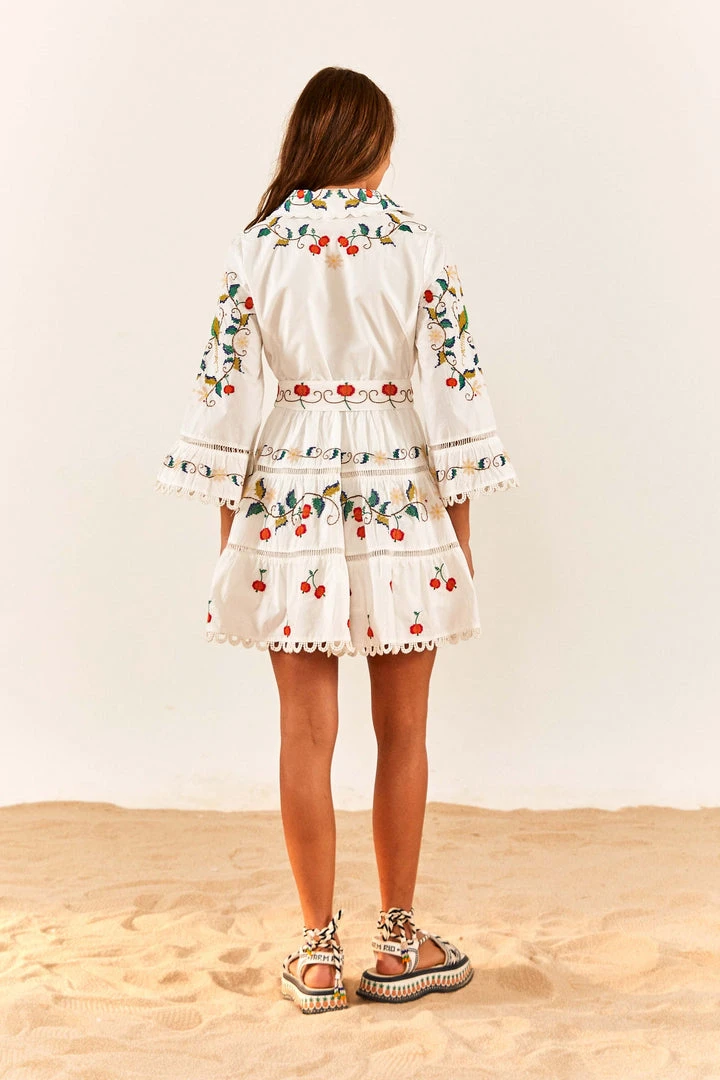 What a delicious Summer it will be! The Pitanga Embroidered Belted Mini Dress is a versatile piece to walk you from the city to the beach (and all places in between!). It has a cozy fit, jaw-dropping lace detailing and embroidered work, and the perfect length to show some legs. So what are you waiting for to add this cute dress to your best sunny plans?